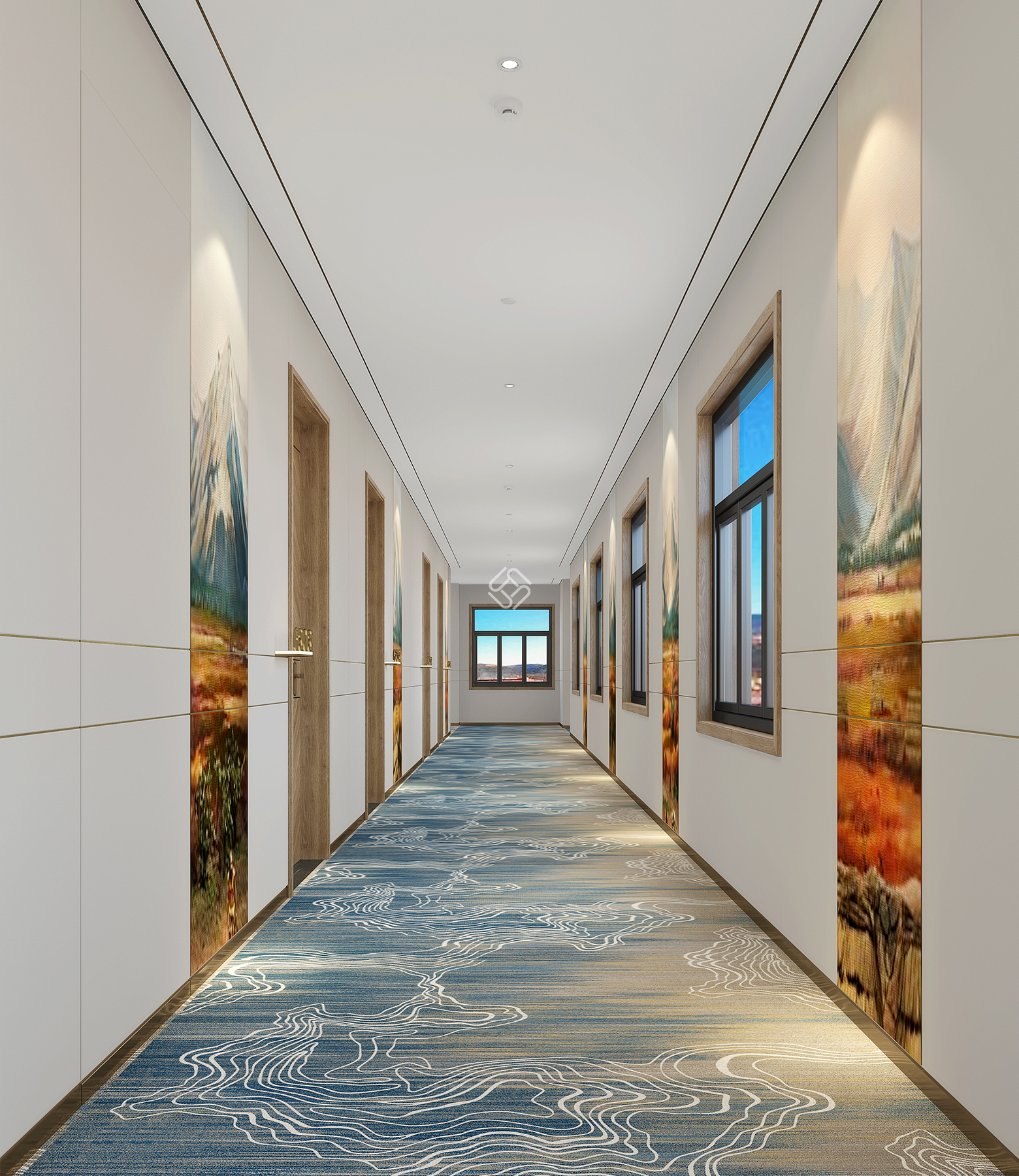 、寬敞的氛圍。大堂的墻面采用了傳統(tǒng)的藏族織錦,展示了西藏獨(dú)特的手工藝品和文化元素。同時(shí),大堂的地面鋪設(shè)了柔軟的地毯,
