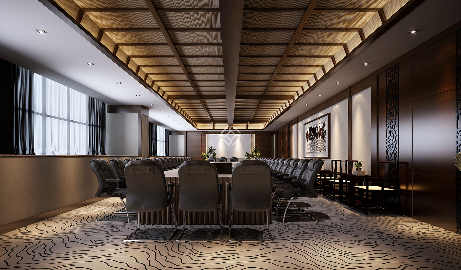 就能賦予酒店空間以靈魂。在整體風(fēng)格把握上,我們將酒店設(shè)計(jì)確定為對(duì)立而統(tǒng)一的新中式風(fēng)格。新中式風(fēng)格是中國(guó)傳統(tǒng)風(fēng)格文化意義在當(dāng)前時(shí)代